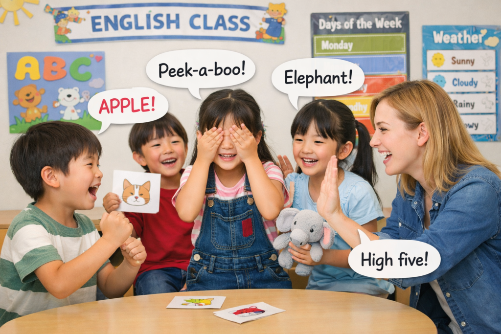 「先生がいつも優しく教えてくれるので、英語の勉強が楽しいです。英語の歌やゲームを通して、英語がどんどん好きになりました。学校のテストでも自信を持って答えられるようになりました。」