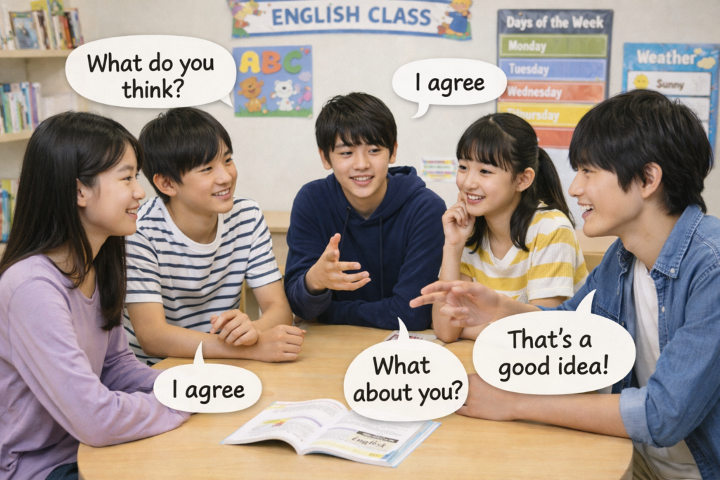 「最初は英語で話すことに緊張していましたが、ここでは間違えても大丈夫と言われて安心できました。授業を受けるうちに、英語で自分の意見を言えるようになり、学校の授業でも積極的になれました。」